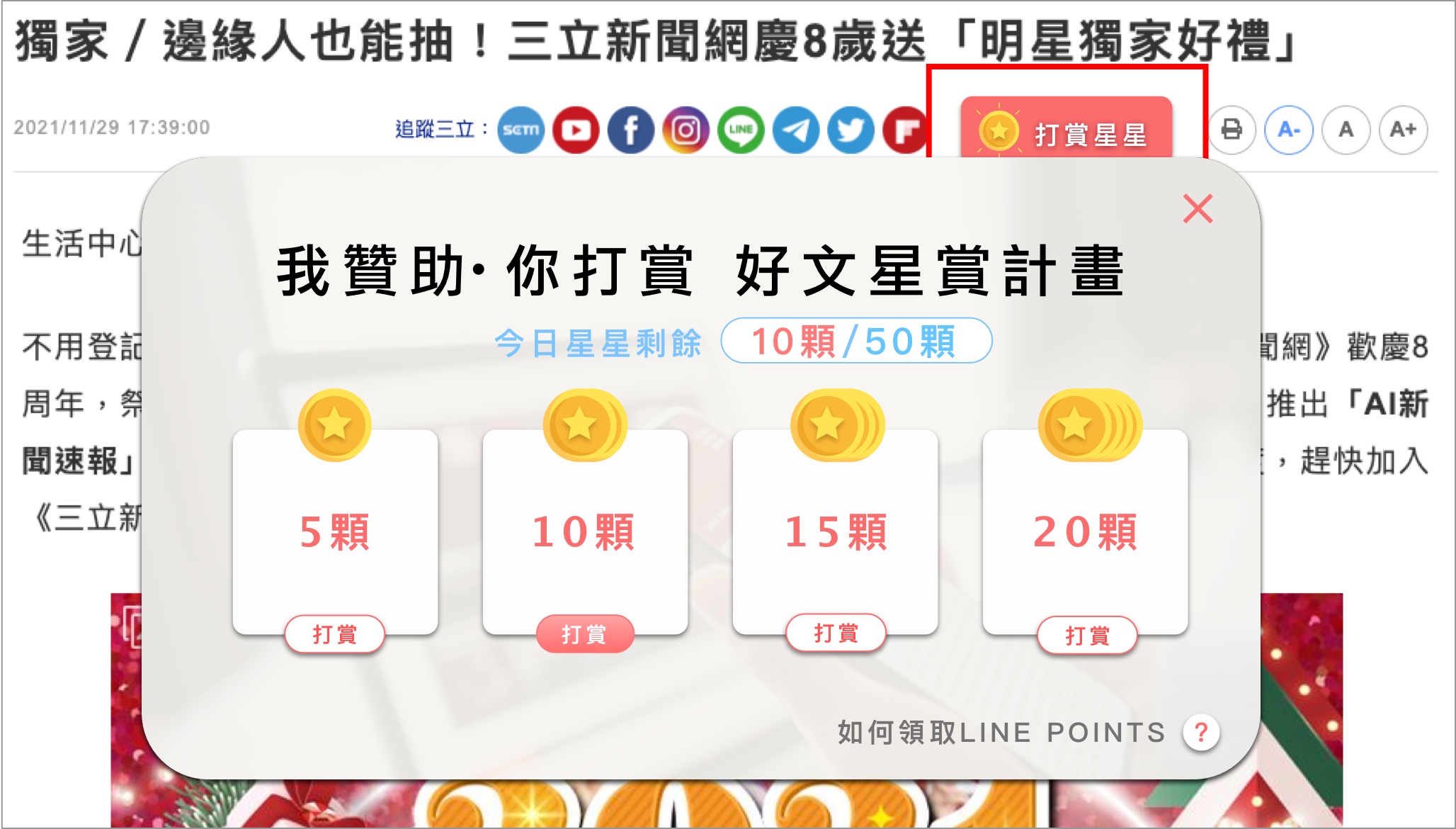看完文章後,點選上方「打賞星星」,並選擇打賞星星數即完成打賞。